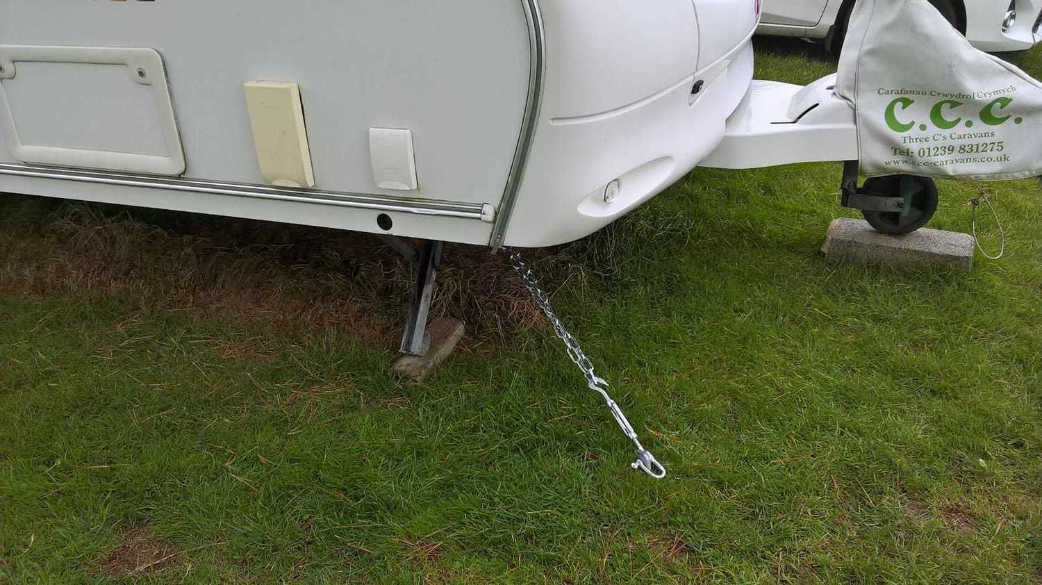 Simply drive the anchors down into position on each corner of your caravan. Position them first to ensure the chain is long enough. These anchors are driven into position using impact, they twist down into the ground on their own helix. These are not to be screwed in. Use a lump or sledge hammer to drive anchors down. Simply attach chains to underside of caravan, use shackles to attach chain to anchor and buckle. It's the buckle that tensions the chain and allows for a neat and tight, secure fixing.