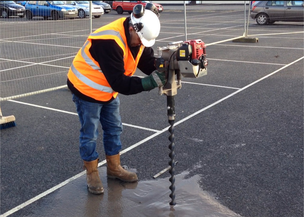 Installing through tarmac for a busy town centre and providing a solution for capping off the anchors to ensure public safety standards adhered to.