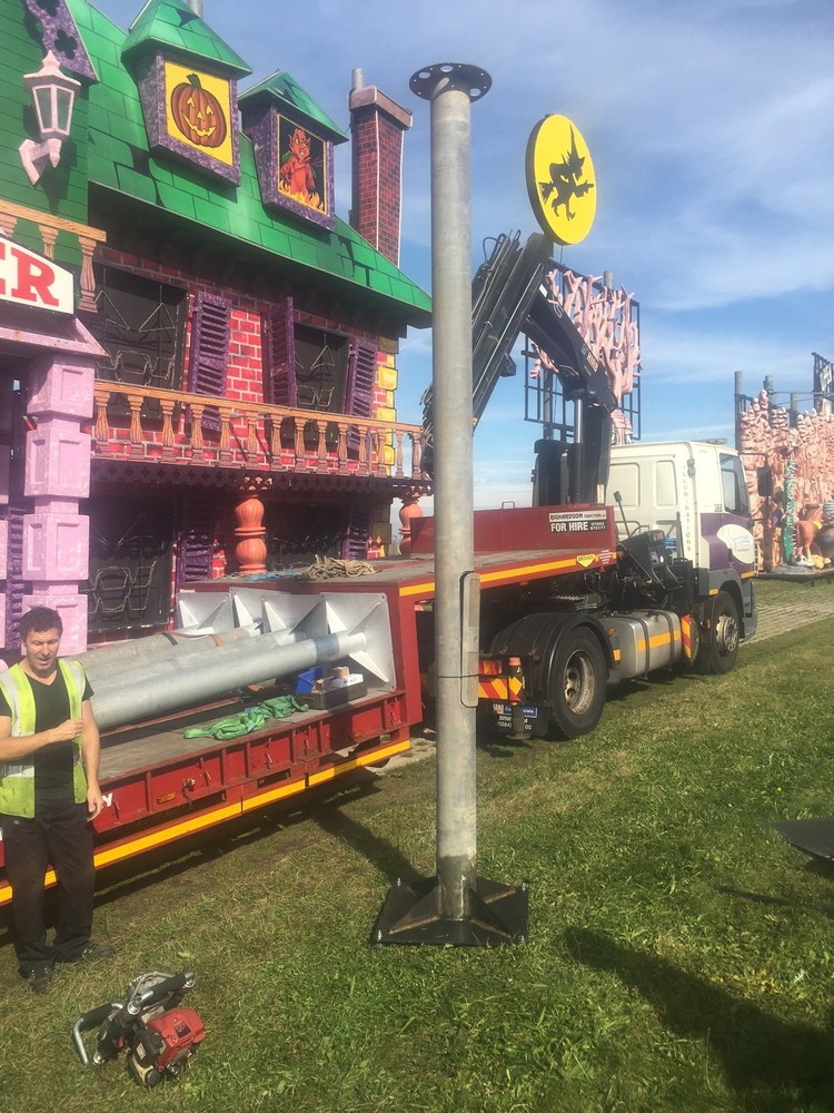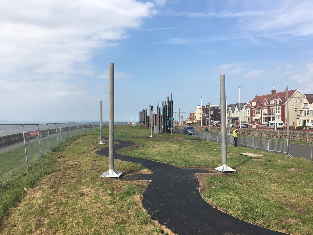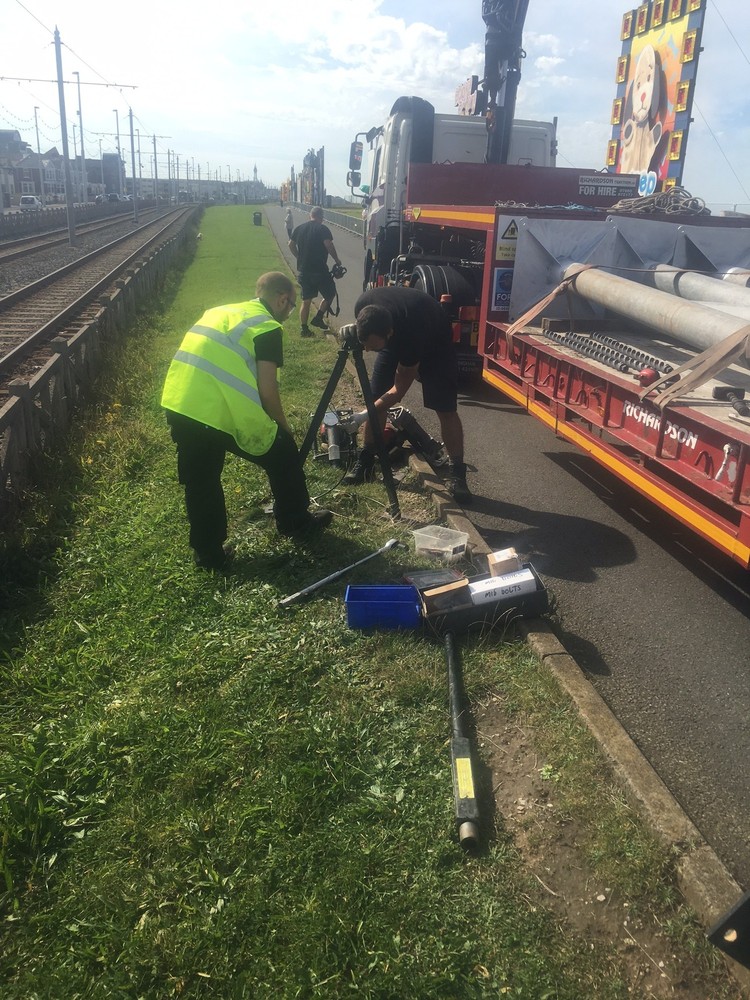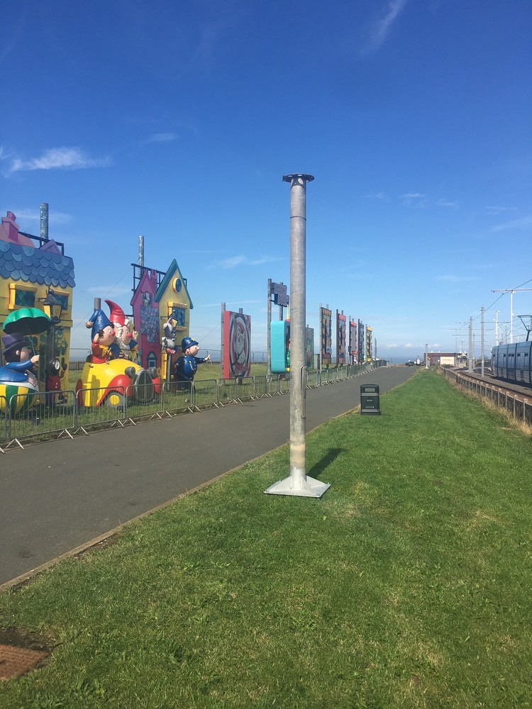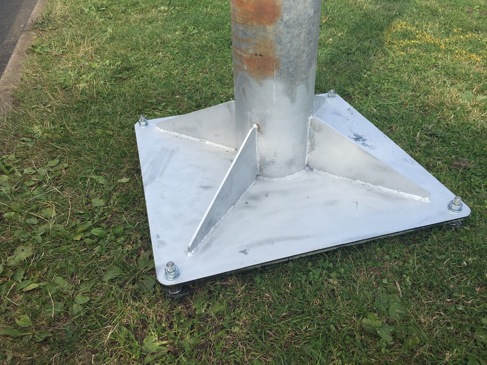 We designed a bespoke base plate for use with Blackpool Illuminations own projector poles. The SF50-10-1260 threaded head anchors were specified in line with load ratings required and on site soil conditions. The anchors were installed using a hand held petrol post driver. A template was created for improved accuracy of anchor installation. Once the anchors were in position the base plates were secured using set screws and washers.