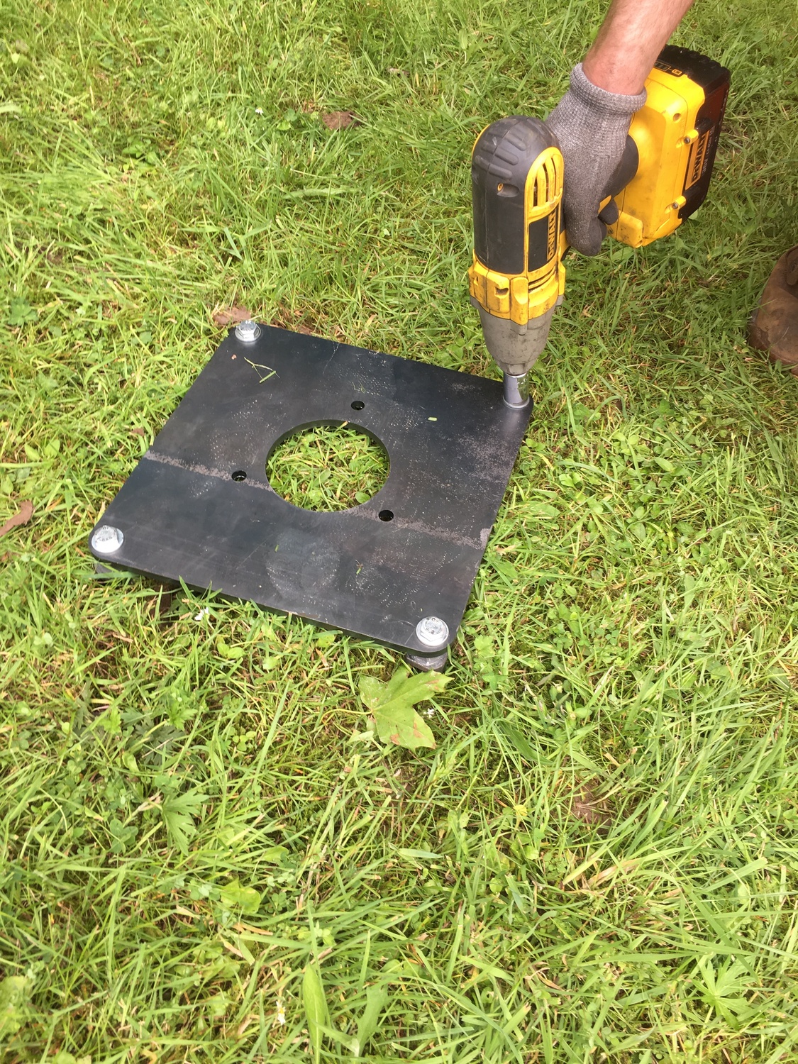 Fix baseplates to Spirafix Ground Anchors (attach blue lights accordingly).