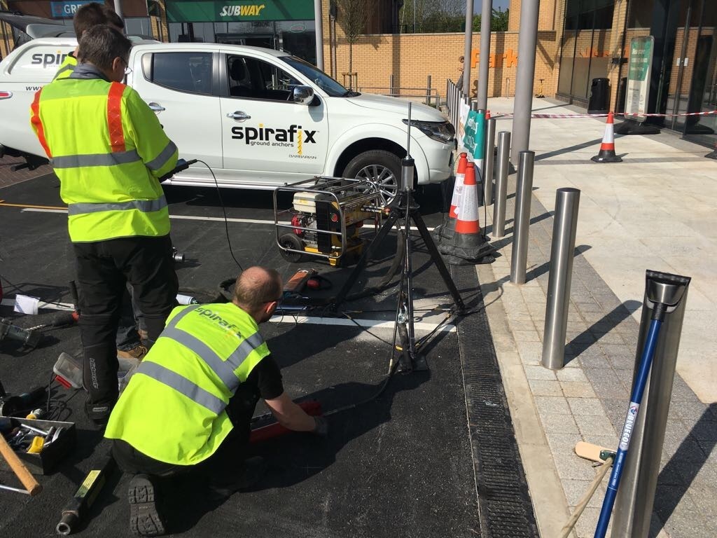 Quote - 'When the ‘Wee fit’ shelter was redesigned, the engineers turned to Spirafix to resolve complex ground anchorage issues. This shelter was commissioned by Halfords through Engineered Solutions Projects Ltd who knew the Spirafix anchor was the lowest cost, fastest solution to the issue. Together we engineered a procedure that makes the ‘Wee Fit’ shelters so much cheaper to install, 3 hours down from 3 weeks is a notable improvement.
