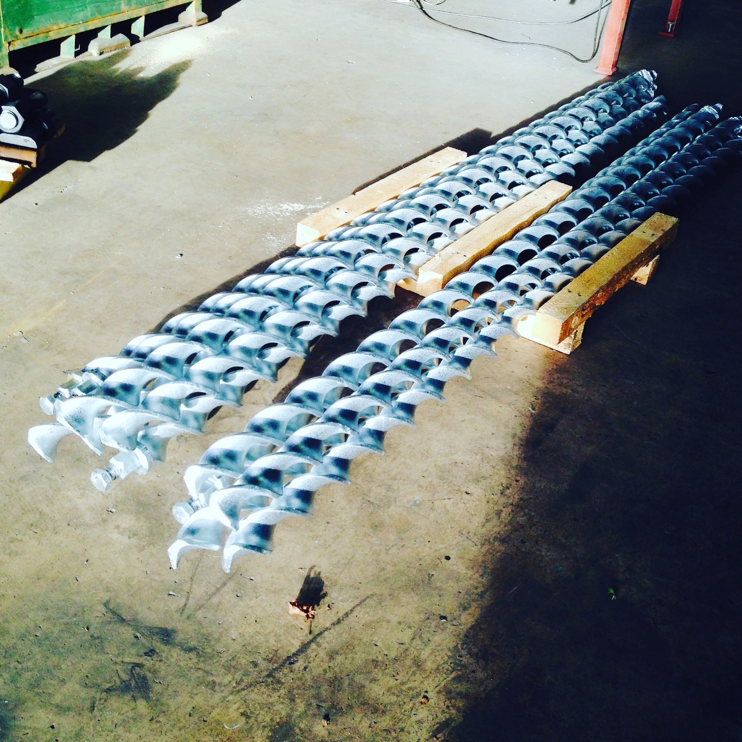 We galvanised just 8 of our 2.2 metre, 75mm spirafix ground anchors and delivered them to site to install them with a hydraulic installer - using a 30 litre power pack providng 95 joules of impact energy.