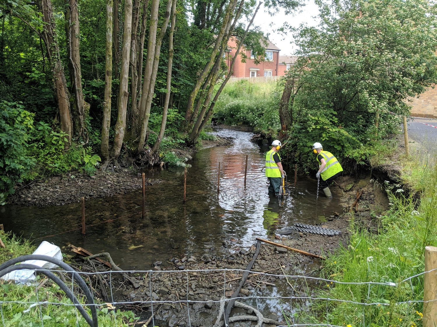 We were happy to say the our surface treatment performs better than galvanised products and would out live the life span of the timber. The other question we asked ourselves was how to go about installing these anchors? With the water levels measured it was concluded that wellies and waders would be worn by the operators Jamie and Lee, which would be sufficient to allow them to get to each install location.